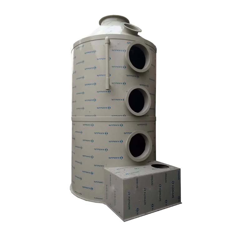 含尘气流向上运动,液滴由喷嘴喷出向下运动,粉尘颗粒与液滴之间通过惯性碰撞、接触阻留、粉尘因加湿而凝聚等作用机制,使较大的尘粒被液滴捕集。当气体流速较小时,夹带了颗粒的液滴因重力作用而沉于塔底。净化后的气体通过净水器去除夹带的细小液滴从顶部排出。